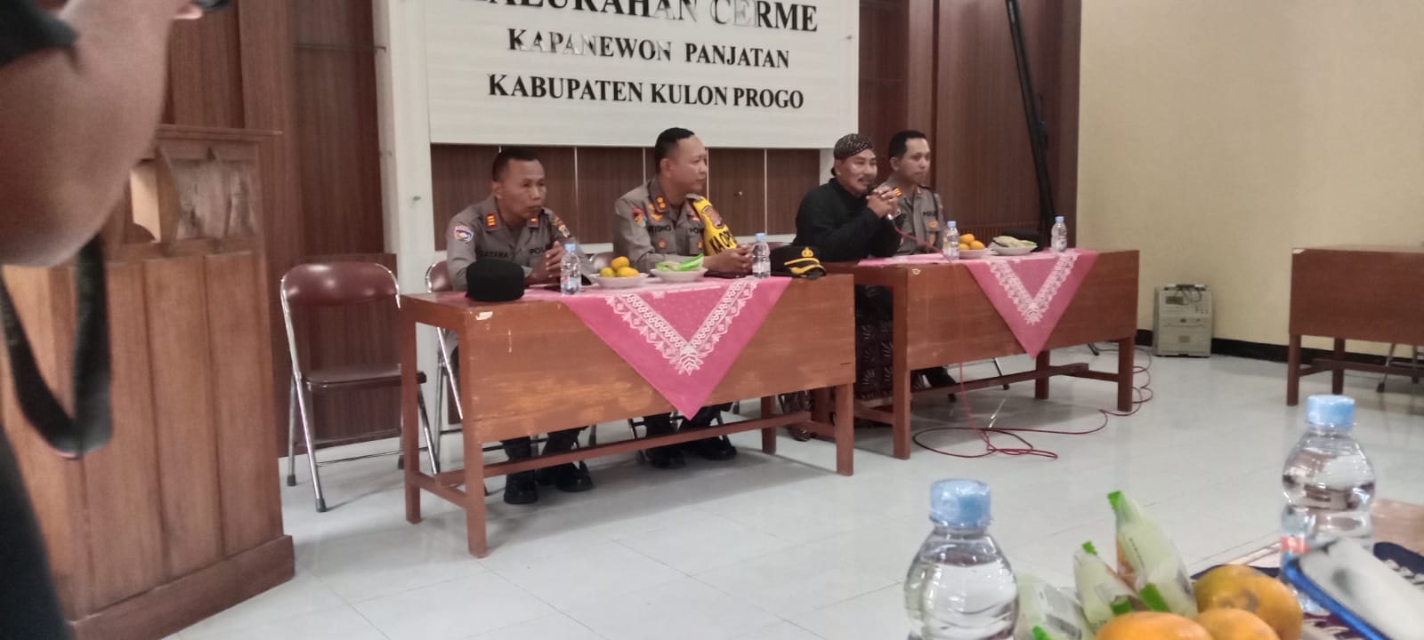 Kalurahan Cerme menyelenggarakan kegiatan Silaturahmi Kamtibmas Jaga Warga bersama jajaran Kepolisian Resor Kulon Progo pada Kamis, 5 Februari 2026, bertempat di Aula Balai Kalurahan Cerme.
